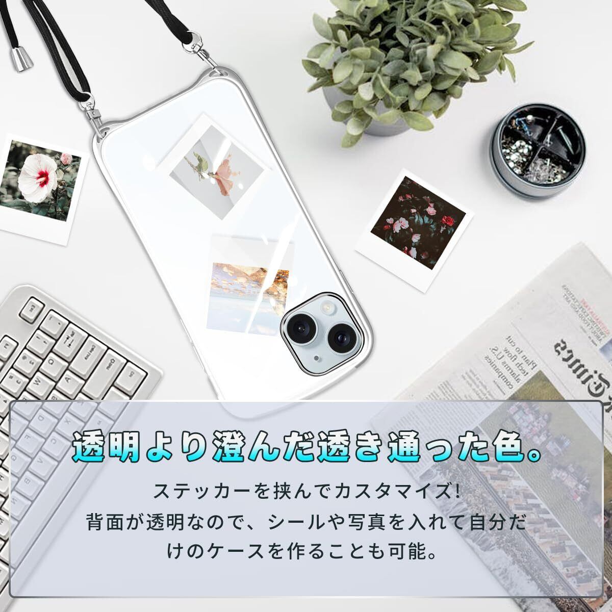 【新着商品】Yidahe iPhone15 Plus 用 ケース クリア ショルダー ストラップ付き アイホン15 プラス カバー 透明 肩掛け 縄掛け 斜めかけ TPU メッキ加工 耐衝撃 全面保護 薄型 韓国 可愛い iPhone 15 Plus 用 6.7インチ 対応 スマホケース (シルバー)