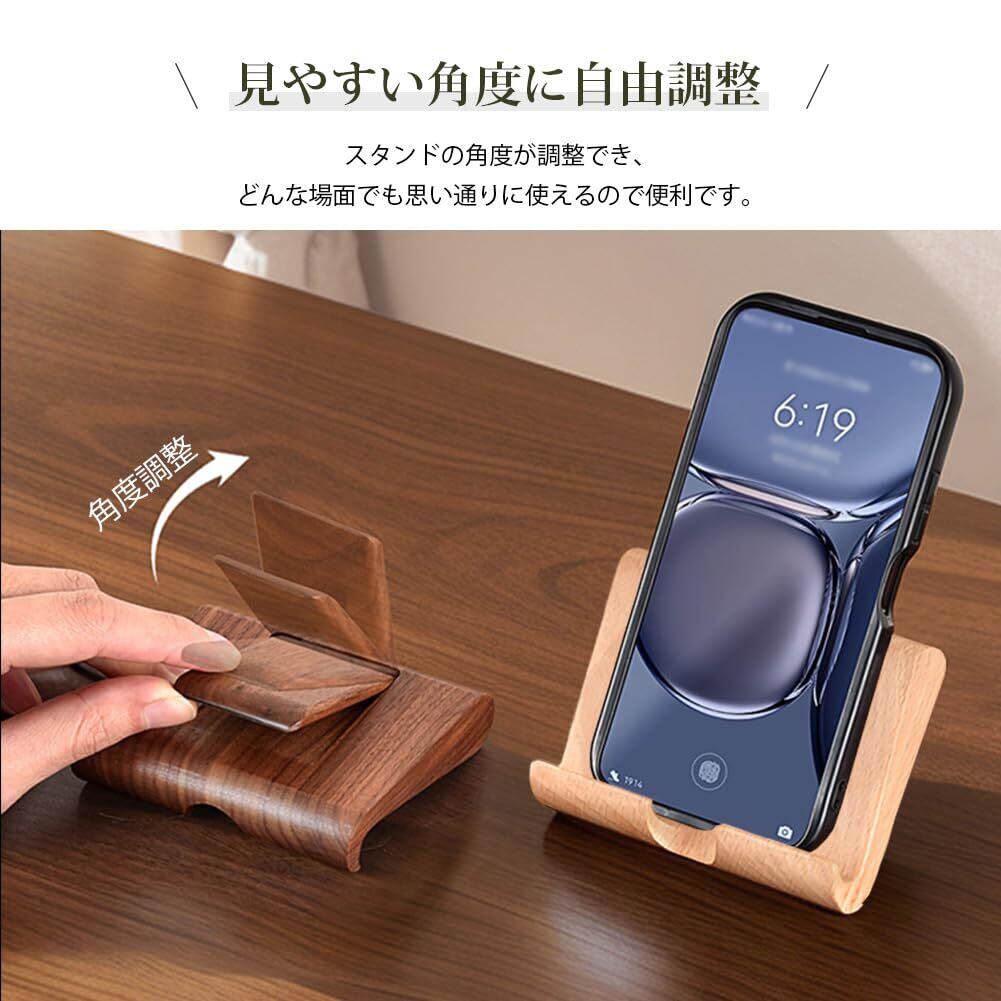 スマホスタンド 木製 角度調整 ケーブル穴付き コンパクト 携帯便利 充電 天然木 無垢材 ブナ材 木目調 木製スタンド おしゃれ タブレット対応 スマホ対応 縦置き 横置き 雑貨 ナチュラル 携帯電話用スタンド (ナチュラル(ヨーロッパブナ))