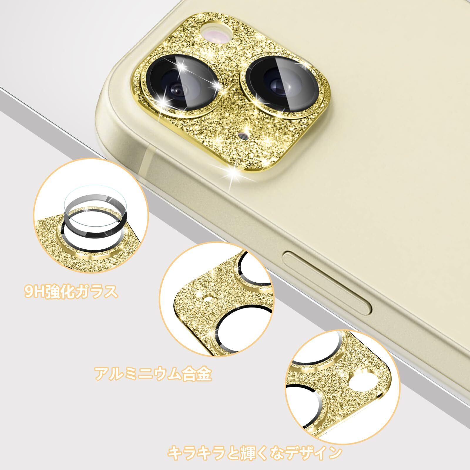 CeiBand ラインストーン カメラフィルム iPhone 15/iPhone 15 Plus 対応 レンズカバー カメラ保護 アルミ合金縁取り+強化ガラス】 キラキラ レンズ保護フィルム 高透過率 露出オーバー防止 全体保護 カメラ保護フィルム iPhone 15/iPhone 15 Plus 対応 (イエロー)