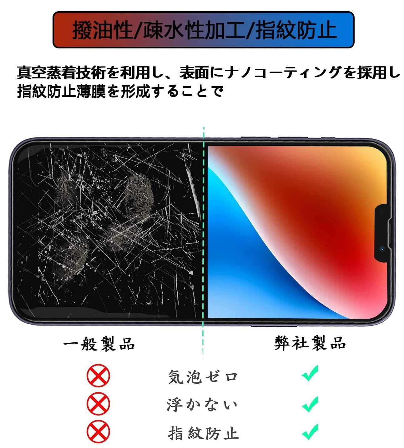 【高透明度・優れた手触り・指紋防止】透過率100%で、iPhone 14 元々の画面をシャープに、隅々まで見事に、臨場感たっぷりに映し出す。新型指紋防止技術、指紋が付きにくくなり、長時間ゲームしていてもスムーズかつ快適に操作可能です。付着しても簡単に拭き取れます。スベスベとした指滑りやスムーズな操作感を実現し、綺麗で光沢感がある画面をいつまでも楽しめます。