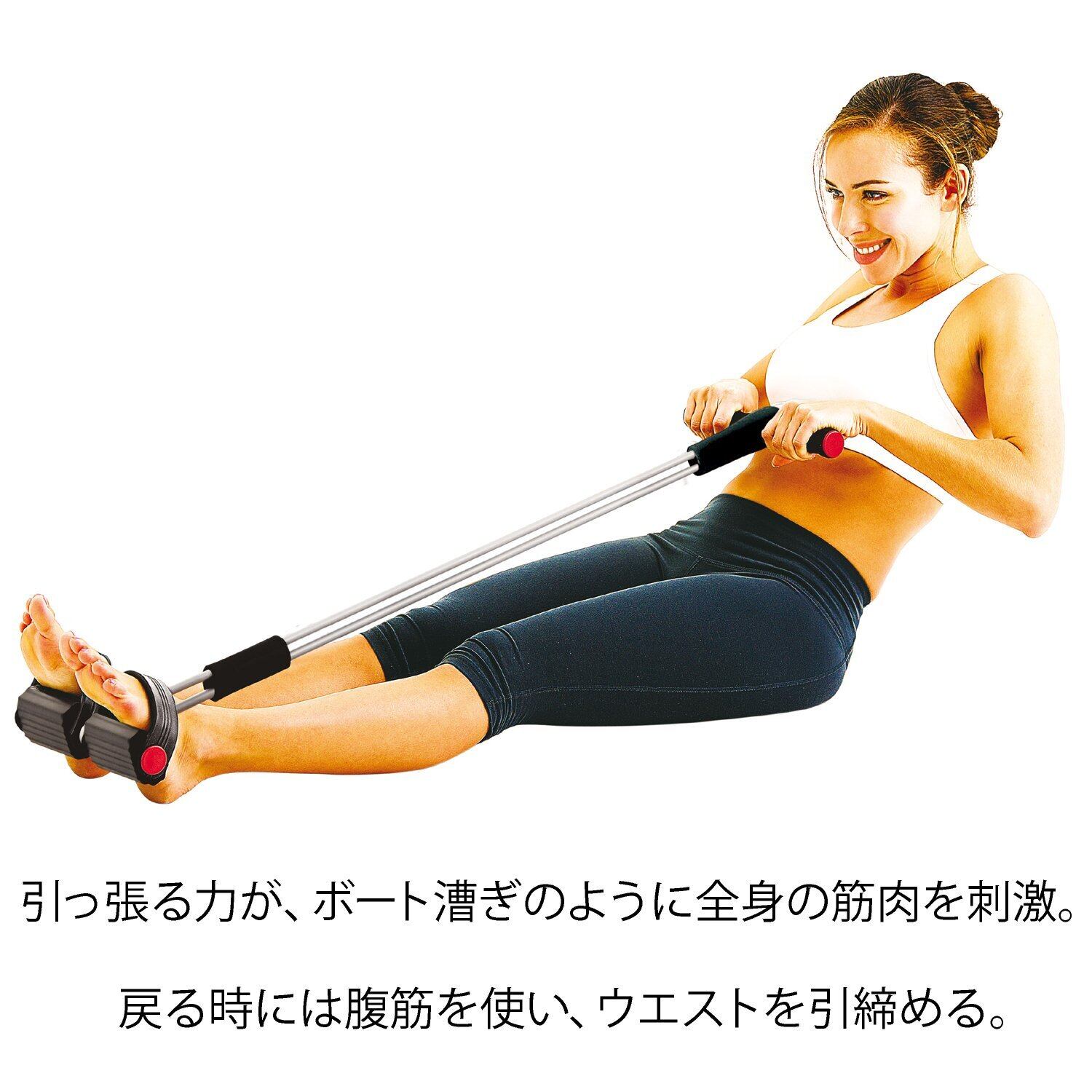 ローイングチューブとしてボート漕ぎ運動に最適。腹筋、背筋、腕、体幹を鍛え、消費カロリーが高いボート漕ぎ運動。