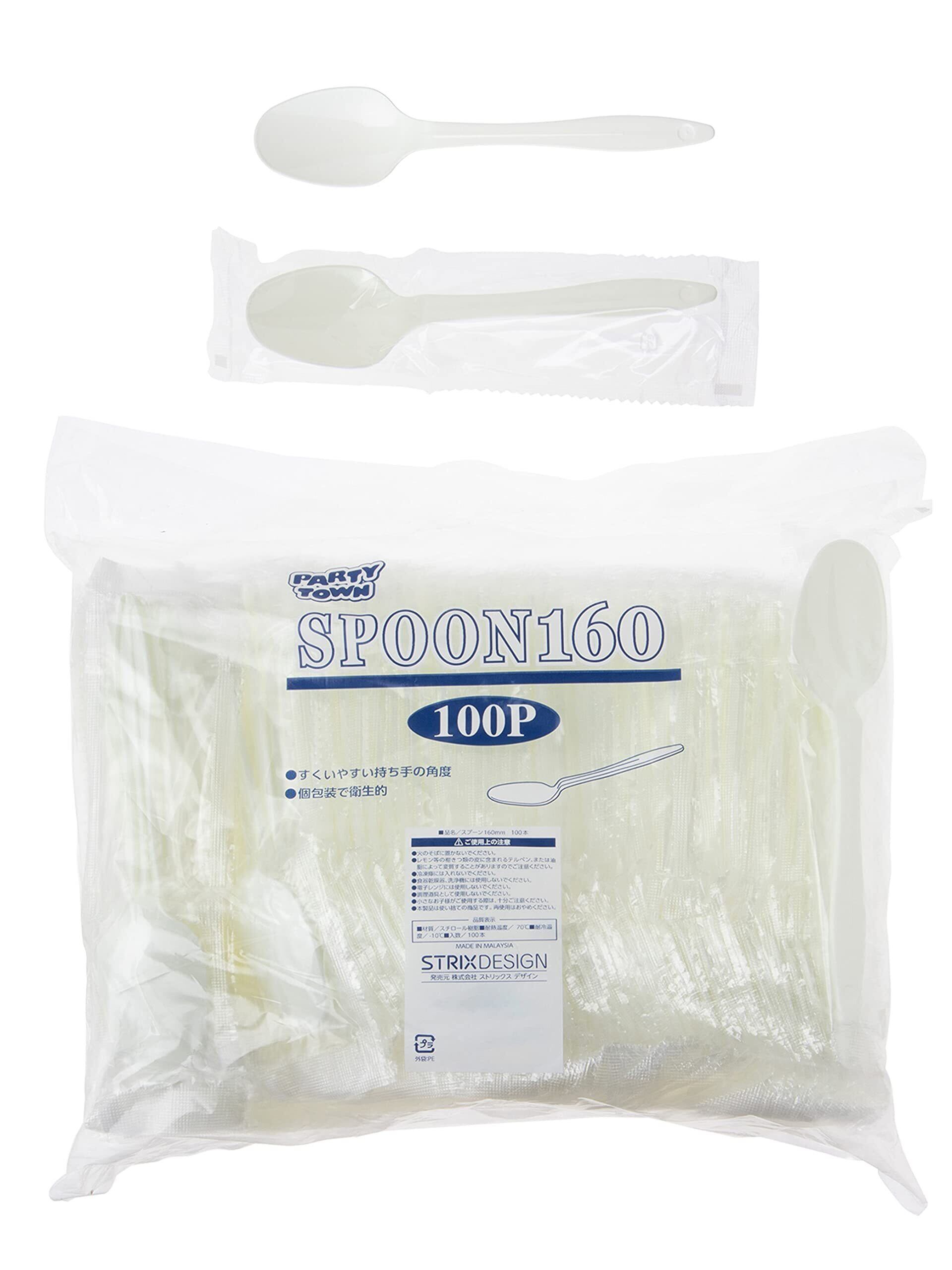 ストリックスデザイン 使い捨て スプーン 個包装 業務用 100本 16cm 白 すくいやすく口当たりもなめらか プラスチック SG-052