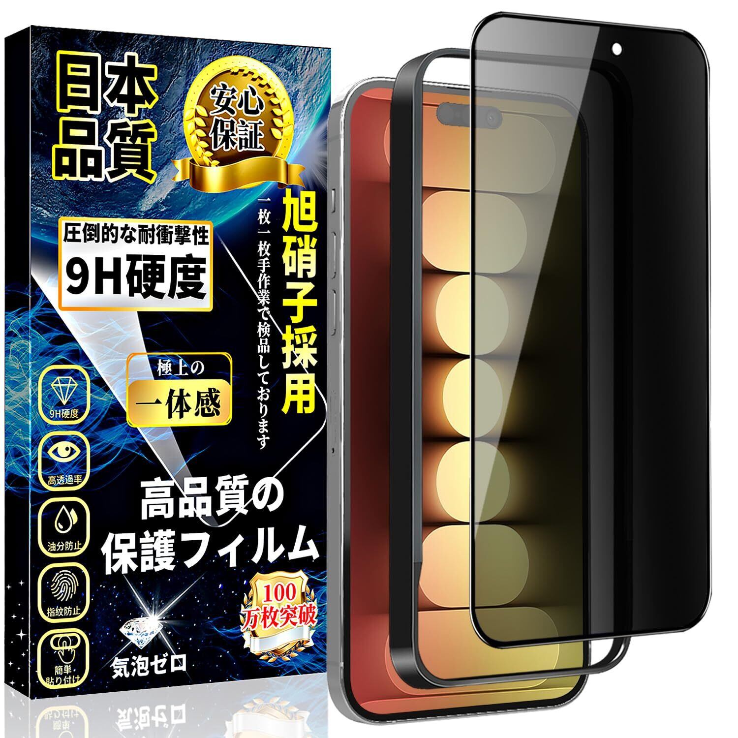 対応 iPhone15 Pro ガラスフィルム 覗き見防止 iPhone 15Pro 強化ガラス のぞき見防止【ガイド枠付き・1枚セット】日本旭硝子製 硬度9H 耐衝撃 撥水撥油 指紋防止 気泡ゼロ 貼り付け簡単 プライバシー保護 アイフォン15 Pro 液晶強化ガラス 6.1インチ
