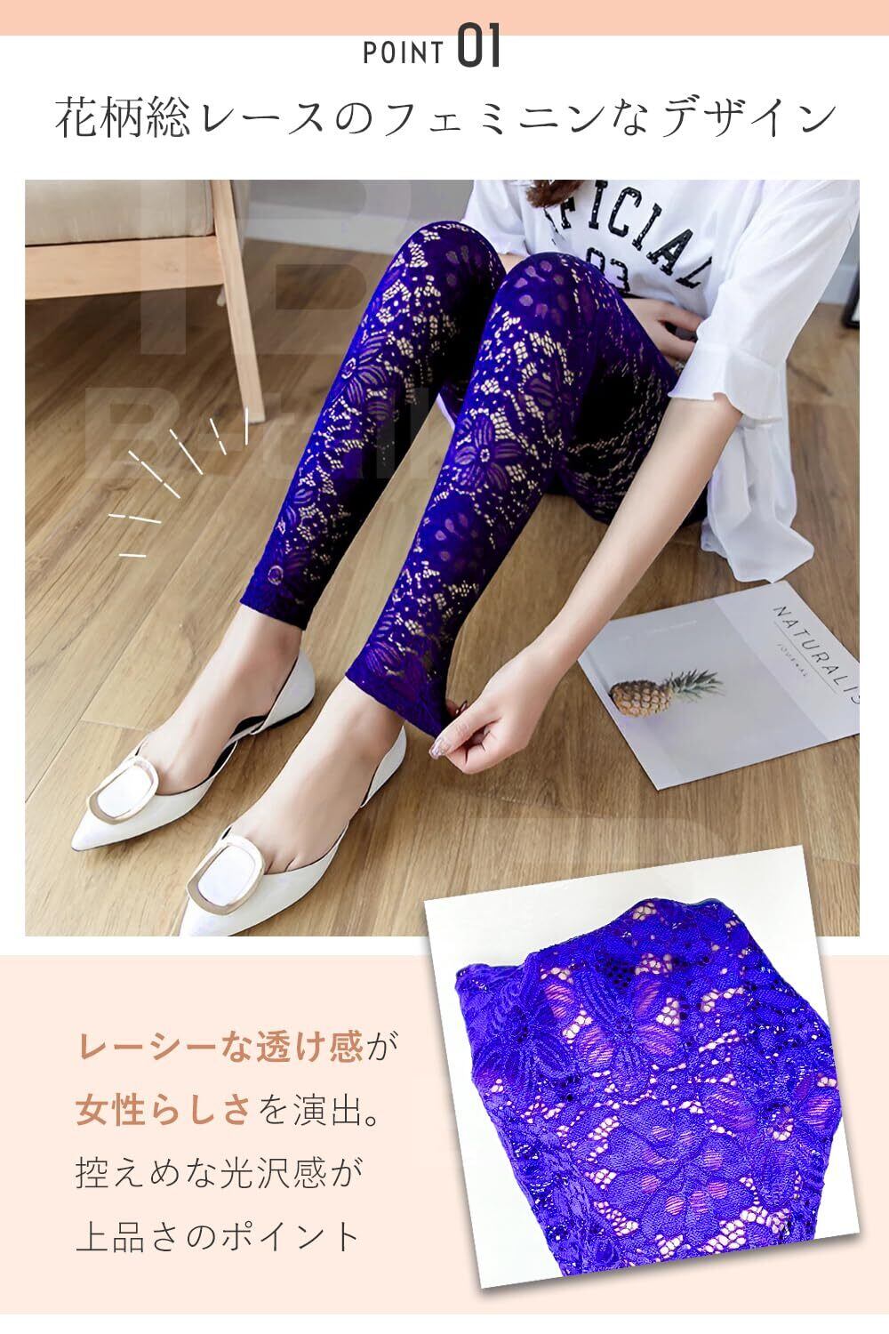 [ビートーク] 美脚 花柄 総レース レギンス パンツ 9分丈 レディース ストレッチ スパッツ レギパン スキニー