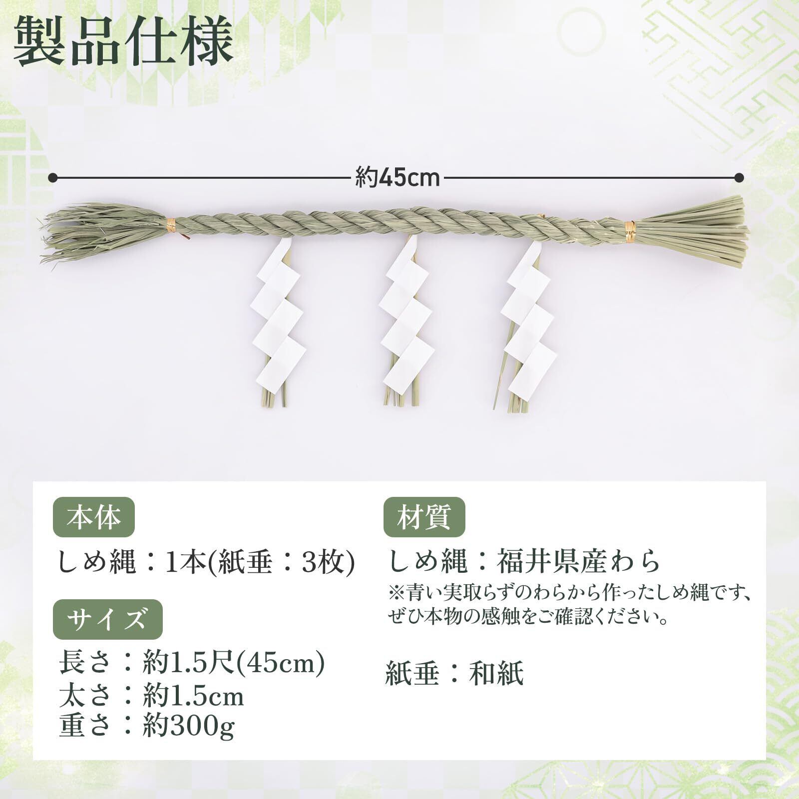 しめ縄サイズ 幅:1.5尺 長さ:約45cm 縄径:約2cm