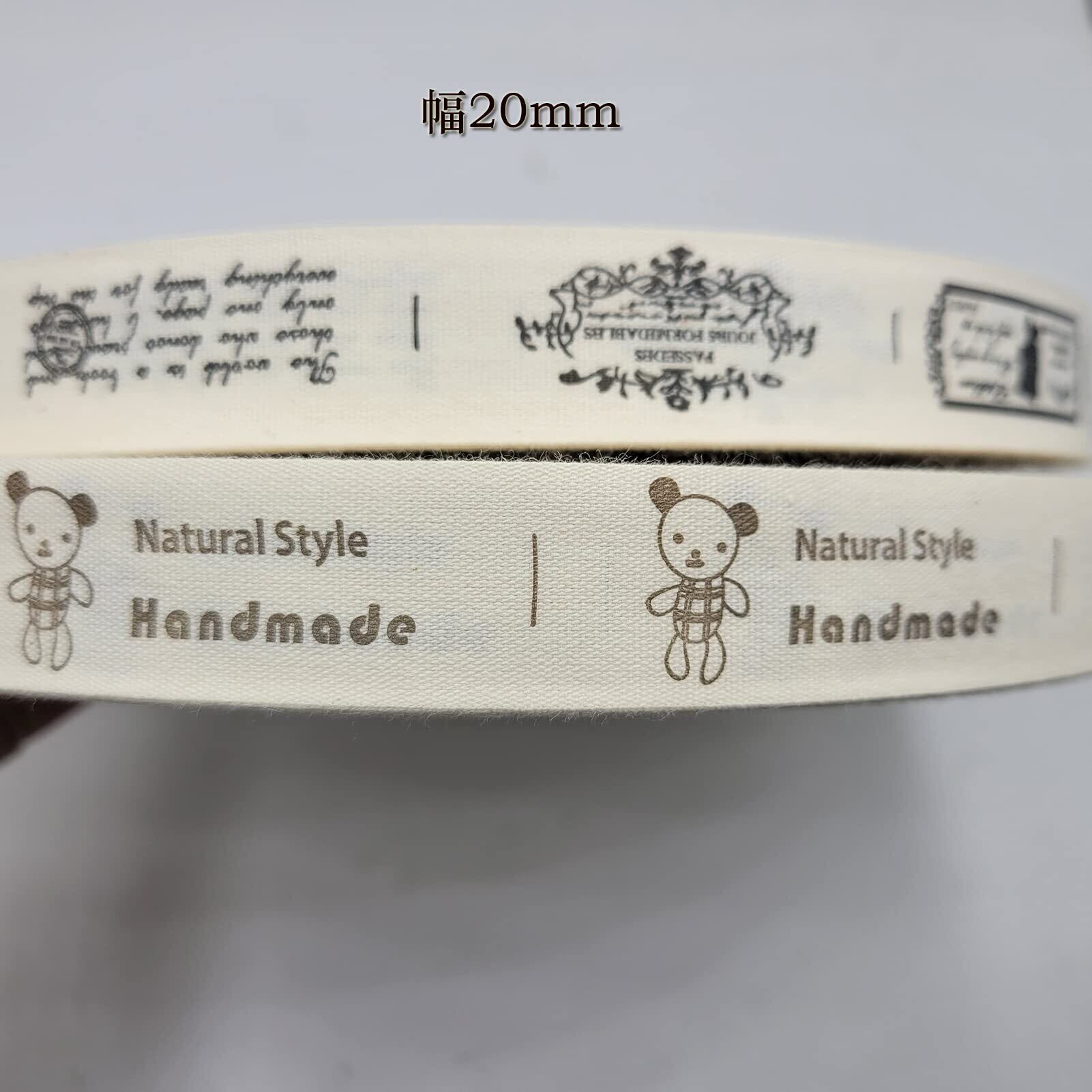 Tianying 綿布タグ コットンタグ (綿100%) ハンドメイド自作タグ 20mm幅 平織りリボン くまさん図案 手芸用品 幅約2.0CM*長さ5M