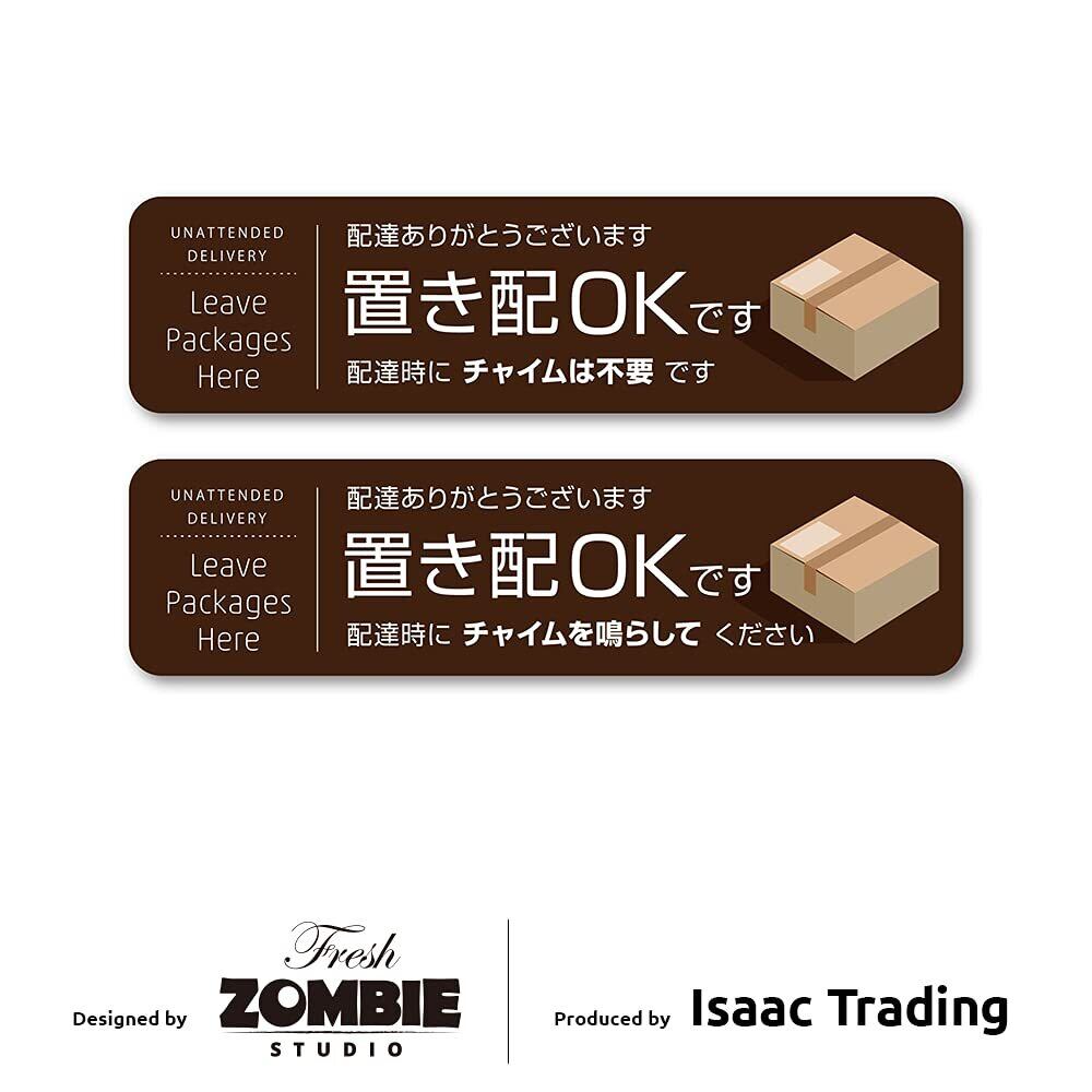 Isaac Trading 置き配OK ステッカー チャイム鳴らして(鳴らさないで)ステッカー付き 耐水 耐候 シール 宅配ボックス 宅配便 宅急便 郵便 配達物 荷物 不在 留守 置配 屋外 玄関 (127×33mm)(郵便受けサイズ マットブラウン)