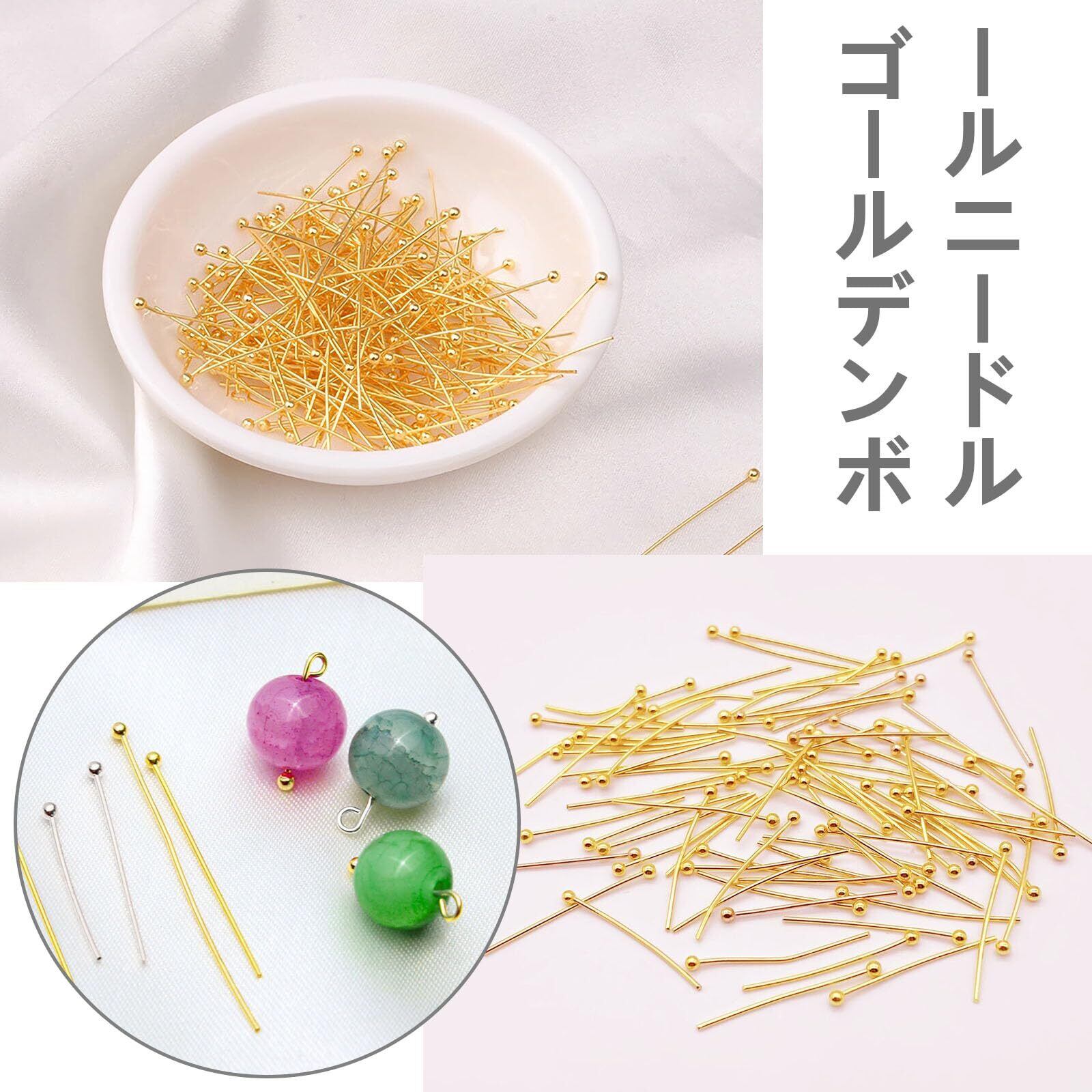 【BEAUTY PLAYER】丸ピン 約600本 3.0cm丈 ゴールド シルバー アクセサリーパーツ 金具 ピアス ブレスレット ネックレスなど ハンドメイド材料 DIY用 ケース付き(3CM)