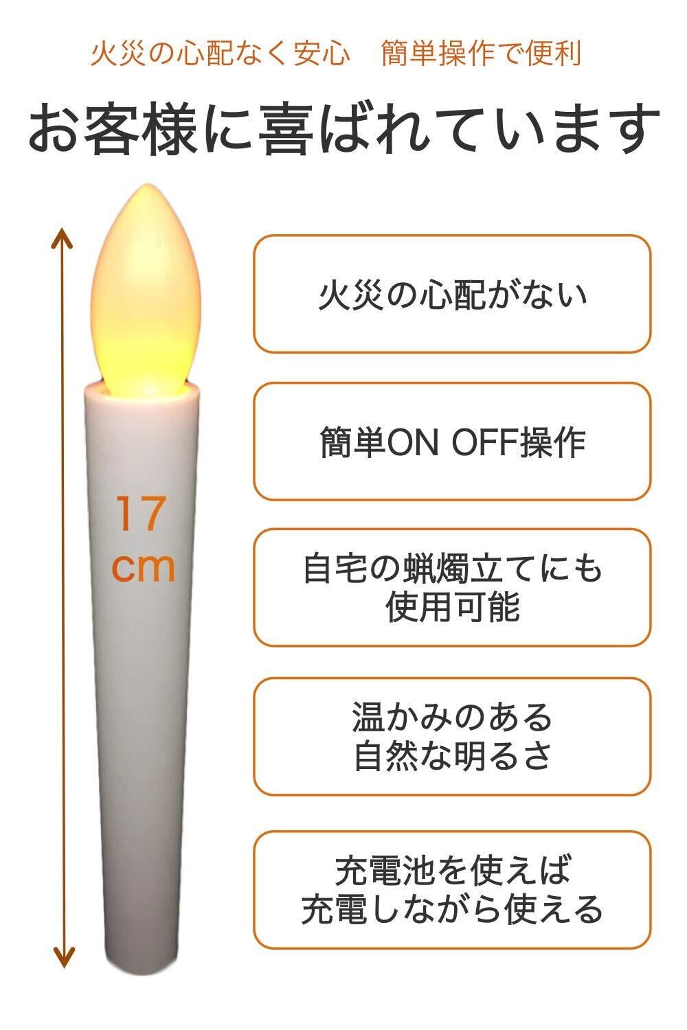 電池式LEDろうそく 長さ17cm 簡単操作 火災の心配がなく安心 お祭り・お盆・お彼岸に重宝 仏壇や教会でも便利