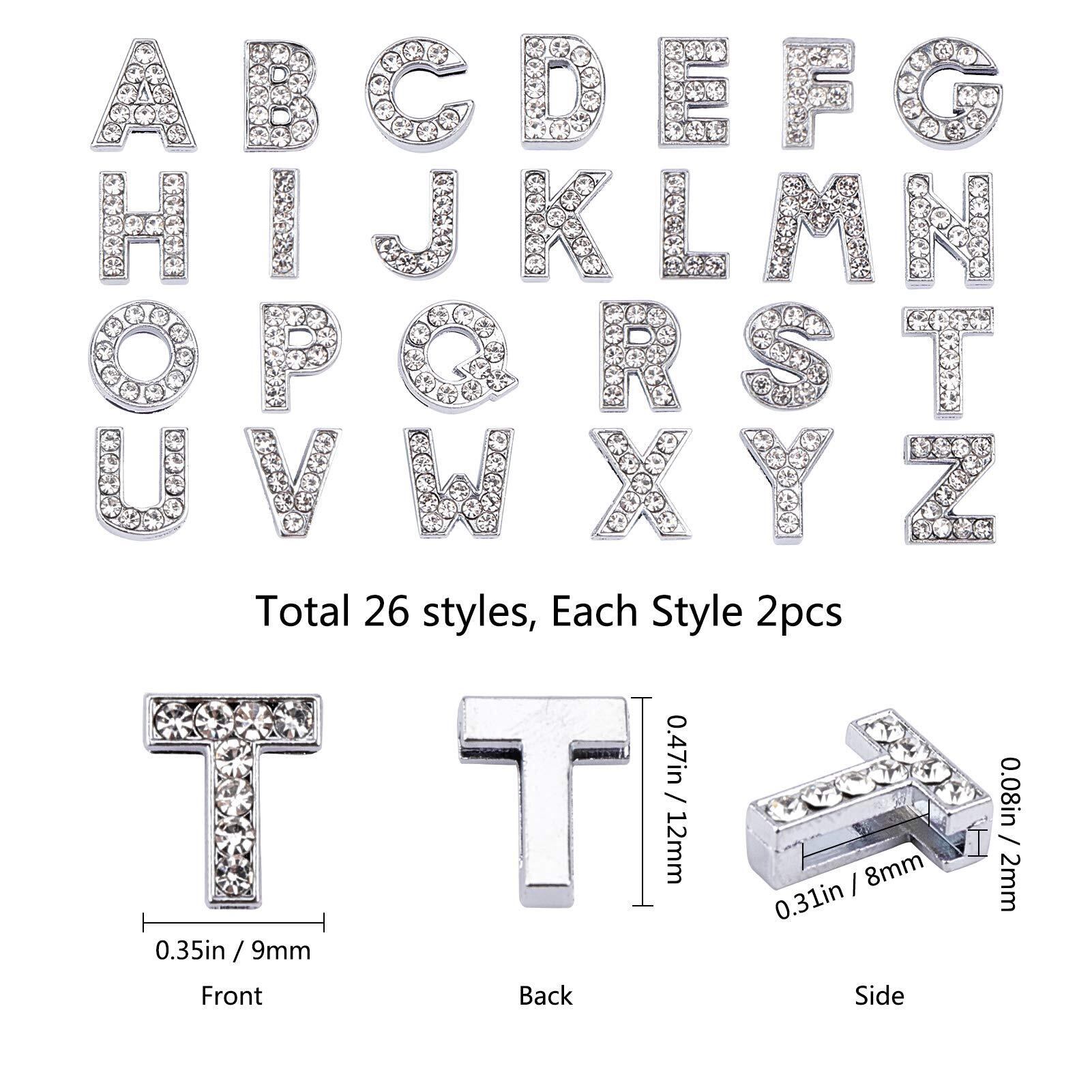 SUNNYCLUE 2セット52個 ラインストーン アルファベット チャーム ジルコン パーツ イニシャル ブレスレット 文字 ペンダント レター ネックレス スライド デコパーツ チョーカー 大穴チャーム シルバー色 26文字セット A-Z柄 合金ペンダント メタルパーツ チャームパーツ アクセサリーパーツ 基礎パーツ ジュエリー作り デコキット クラフト手芸 手作りキット DIY飾り物