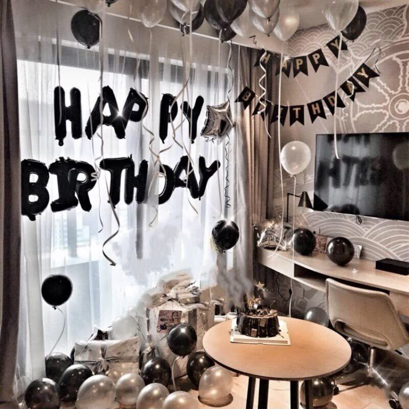 FAMULIA ハッピーバースデー バルーン HAPPY BITHDAY 風船 セット (黒(black)) 文字 誕生日 お祝い 飾り付け 装飾 飾り