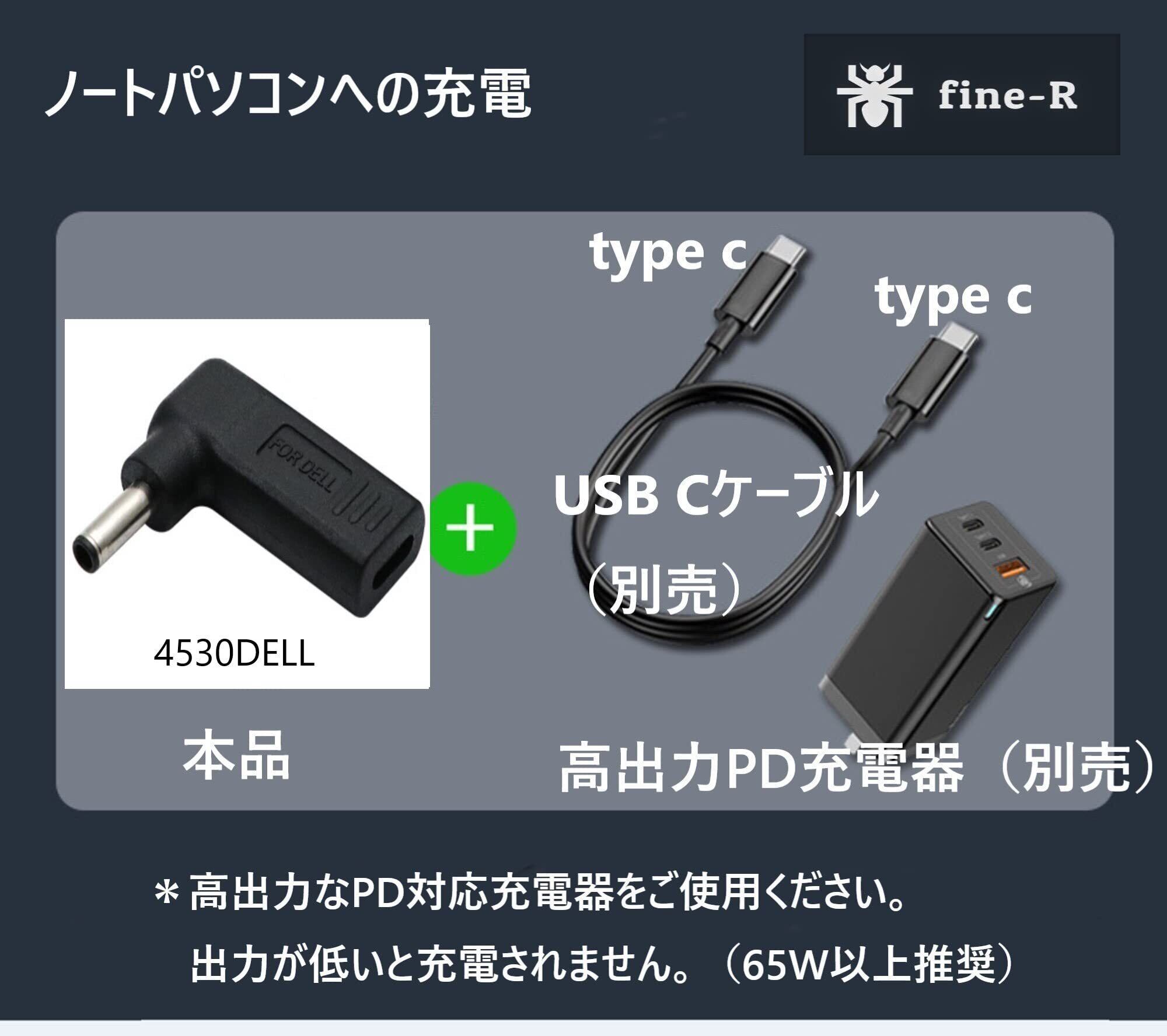 【在庫処分】fine‑R USB-C→DC 4.5×3.0mm 変換アダプター DELL専用 ノートPC用 L字型 PD充電対応 日本検品済 PL保険加入済(P4530DELL)