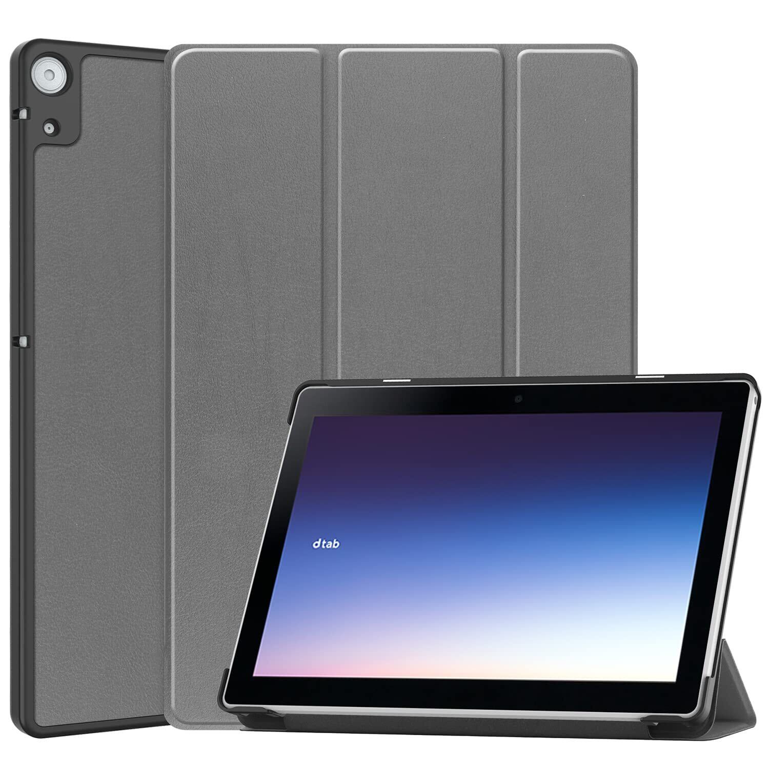 【特価セール】Gosento For NTTドコモ dtab d-51C / SHARP AQUOS SH-T04C 10.1インチ 2025年新型 ケース スタンド機能付き 開閉式三つ折薄型スタンドケース PUレザー カバー (グレー)