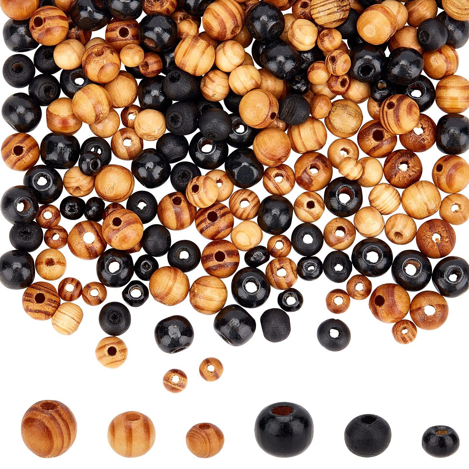 【数量限定】PH PandaHall 約600個 ナチュラル木製ビーズ ブラック染め オリジナル木製ビーズ ブレスレット ネックレス ジュエリー作り ホーム パーティー デコレーション ガーランド作り 6mm 8mm 10mm