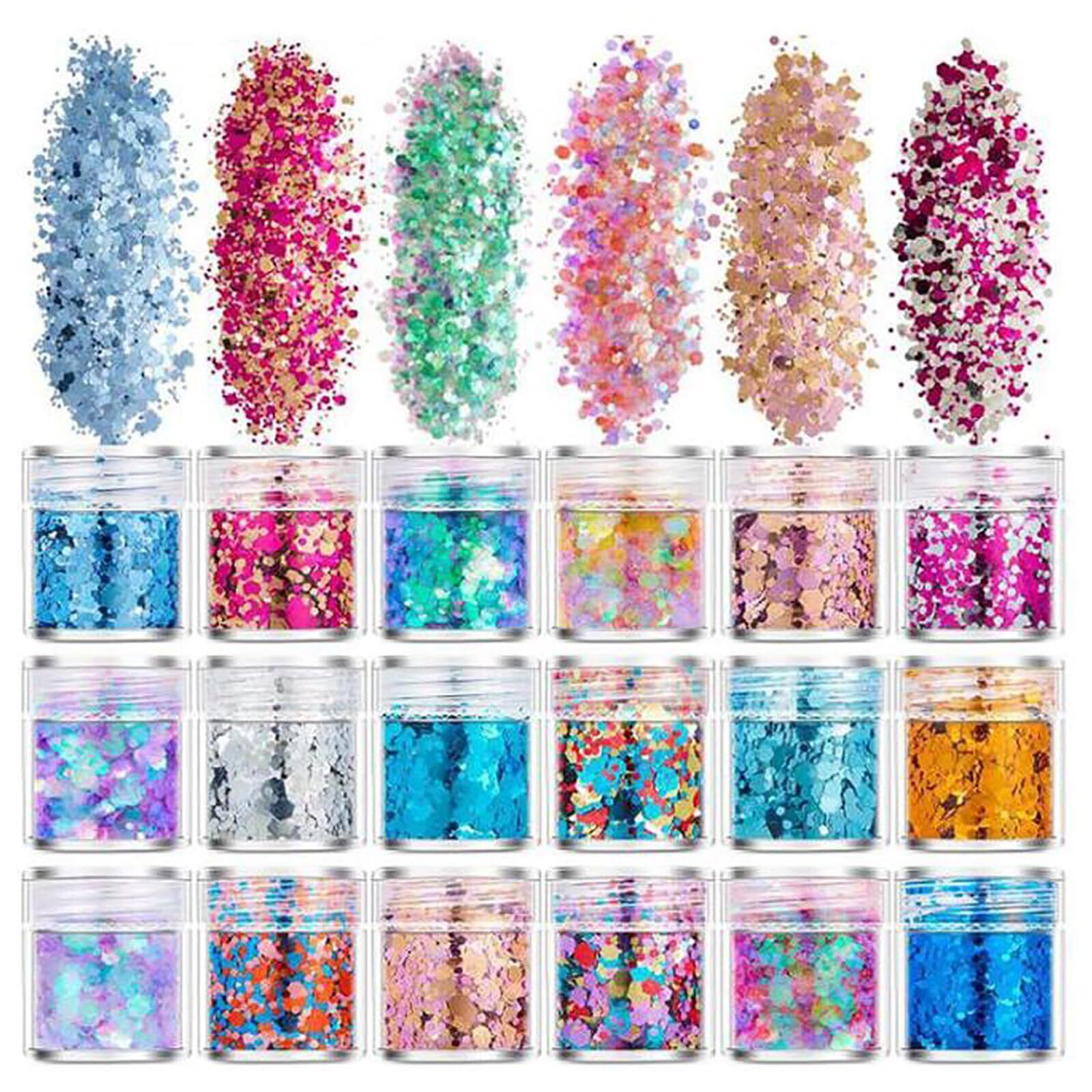 GOODCHI ラメホログラム 18色セット キラキラ ネイルパーツ ネイルアート 容器付き グリッター ラメグリッター ラメパウダー レジン封入パーツ ハロウィン クリスマス パーティ メイク用品