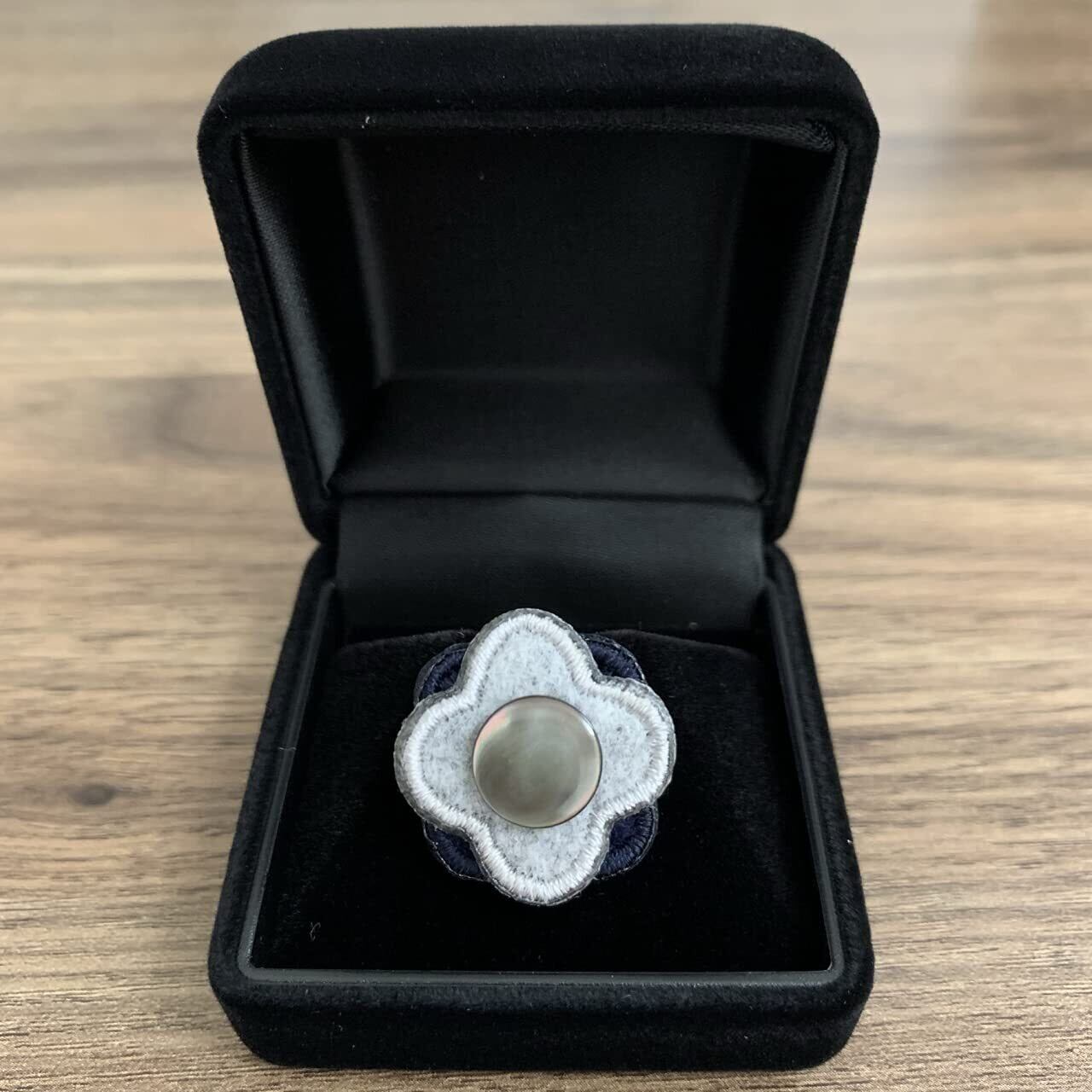 [ピンクターダ] PINCTADAブートニエール ラペルピン フェルト×蝶貝 W4花弁 Ⅰ (グレー×ネイビー×黒蝶貝)
