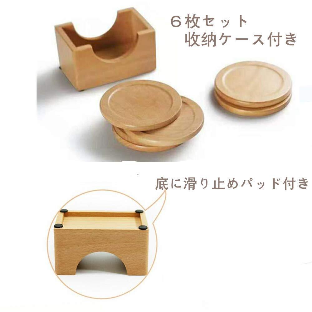 木製コースター おしゃれ コースター木製 丸茶托木 防水 滑り止め断熱マット 茶パッド コップ敷き6枚セット+収納ケース付き お茶 カフェ 来客用(ケヤキ天然木コースター)