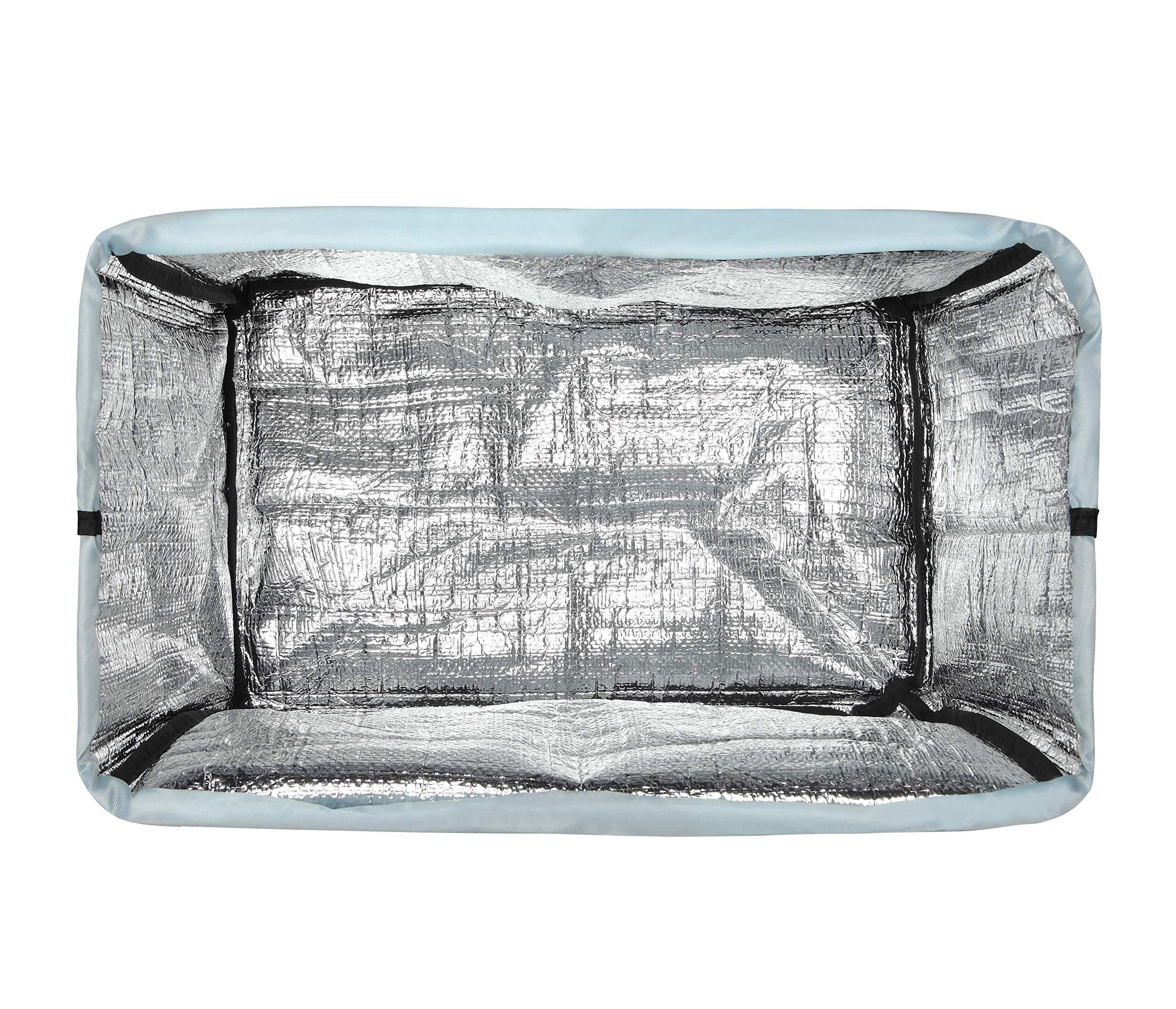 ①スーパーなどでお会計時にレジかごの中にセットすれば詰め替えせずにそのまま持って帰る事が出来ます。お買い物時の時短にも役立ちます! ②本体生地と内側の巾着生地がバイカラーにする事によりお買い物バッグもおしゃれに持つ事が出来ます。 ③バッグのハンドルもくり手のデザインで肩に掛けやすいでデザインになっておりハンドル上部にはPUレザーを使うことにより持ちやすくなっています。 ④内側にはアルミ蒸着シートを使用し保冷保温効果があります。