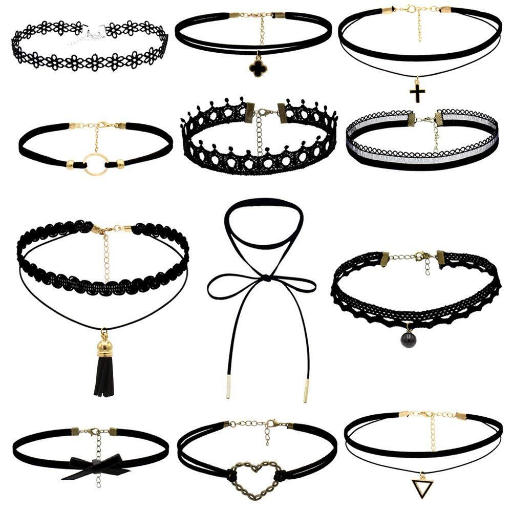 【パッケージ内容】チョーカー ネックレス 黒12点セット。丈夫でシンプルで可愛くて服に合わせやすいです。場合によっては、気分によって、自由に選択し、置き換えられます。