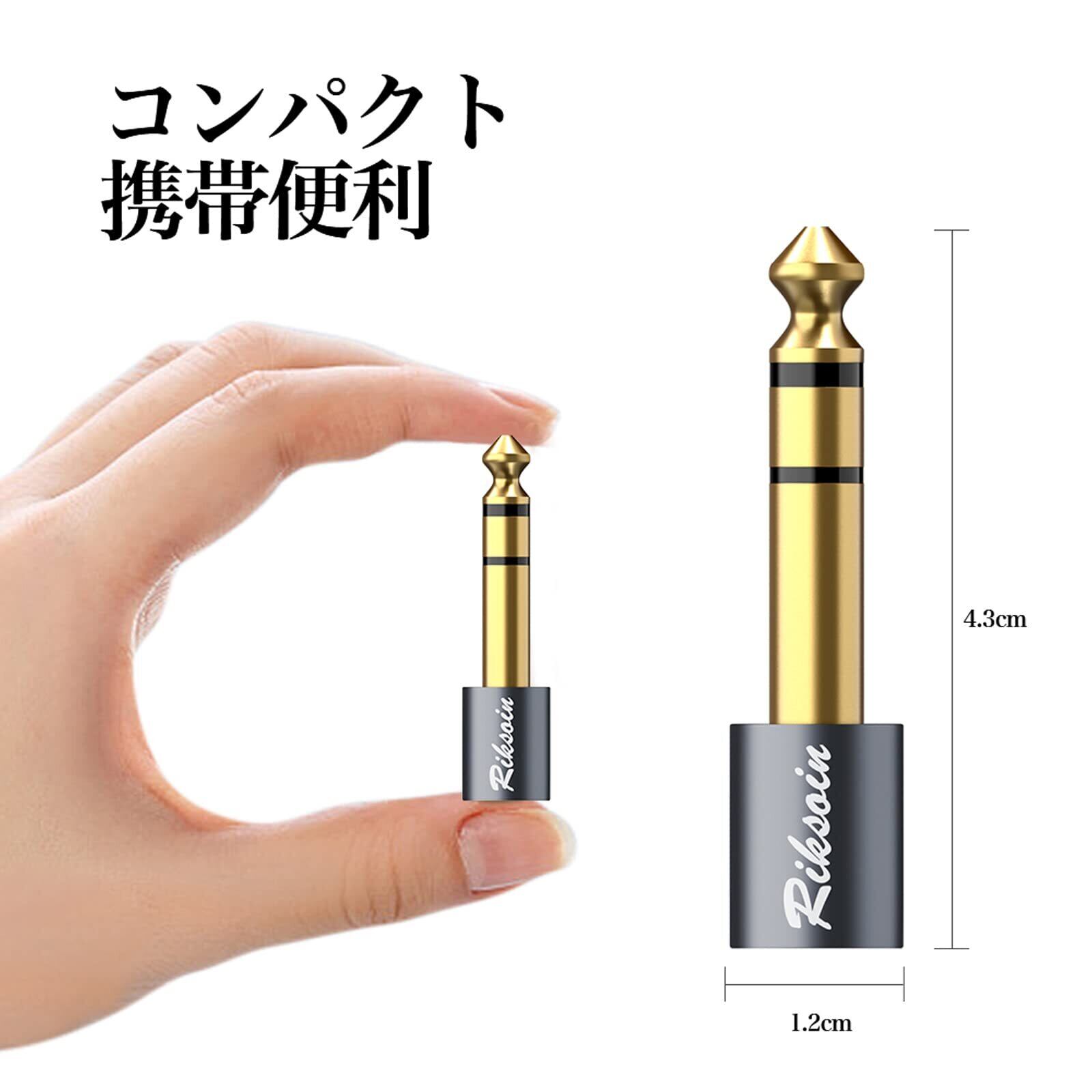 3.5mm ⇒ 6.35mm 変換 プラグ RIKSOIN (4個セット) ステレオミニプラグ (メス) ⇒ ステレオ標準プラグ (オス) イヤホンジャック 変換 24K金メッキ ヘッドホン、アンプ、電子ピアノ等に適用