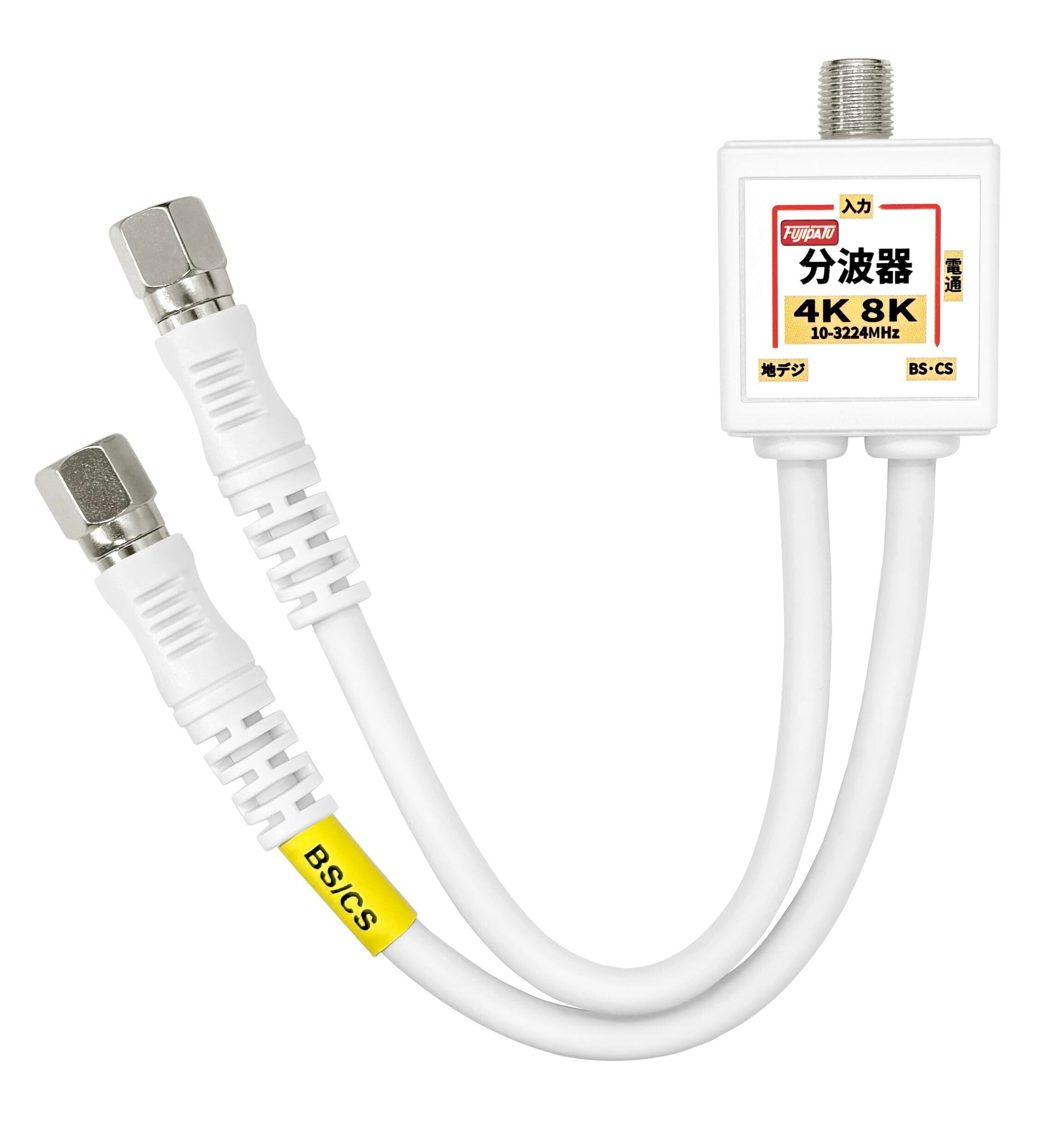F-Factory 分波器 アンテナ分波器 4CFBケーブル一体型 0.2m (4K8K / 地デジ/BS CS/CATV デジタル放送対応) ホワイト FF-4875WH