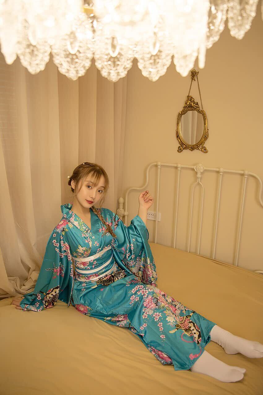【数量限定】レディーズ 着物 ローブドレス 花柄 花魁 衣装 サテン 浴衣 ロング丈 バスローブ パジャマ ナイトドレス 夏祭り ダンスウェア ベルト付き