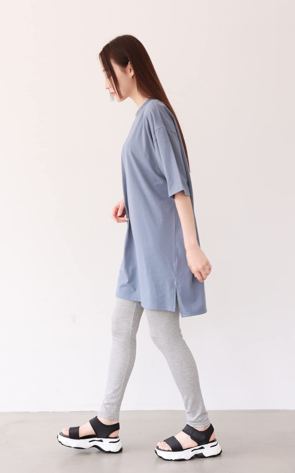 [スリーピングシープ] ゆったり ストレッチ コットン サイドスリット 半袖 ロング Tシャツ チュニック ワンピース ルームウェア 体型カバー ビッグシルエット オーバーサイズ ロンT ワンピ