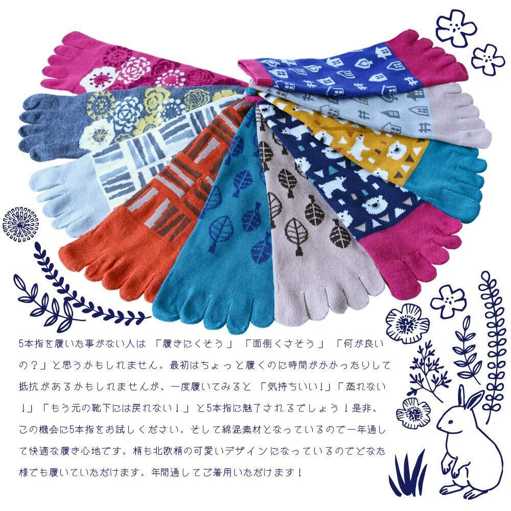 [box408] 靴下 レディース 5本指 ソックス 北欧柄 10足セット 22-24cm