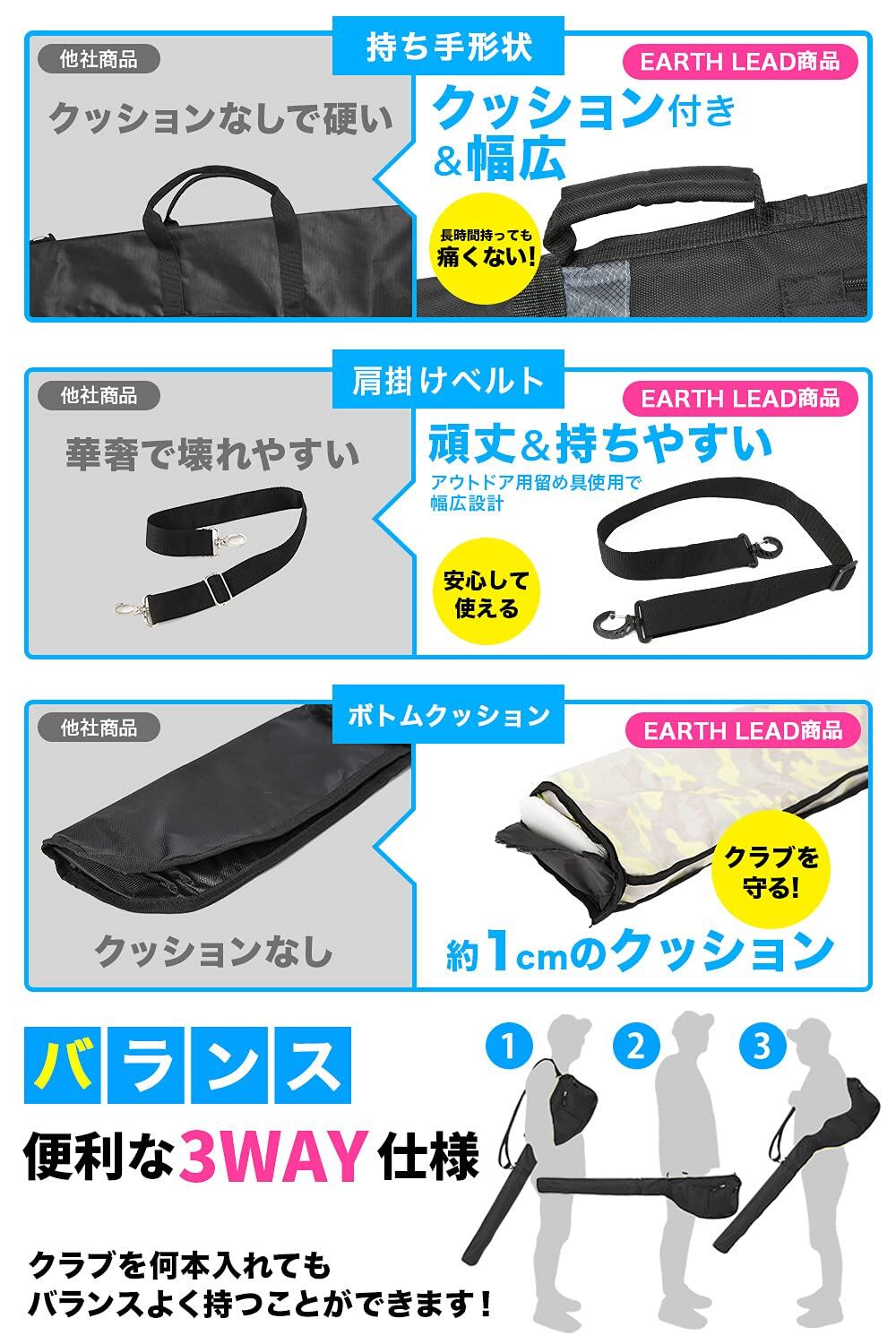 【公式】EARTH LEAD ゴルフ クラブケース 【超軽量 大容量 コンパクト収納 14色】 最大7本収納可能 ファスナーポケット付き 練習用 ゴルフバッグ ソフト クラブ ケース