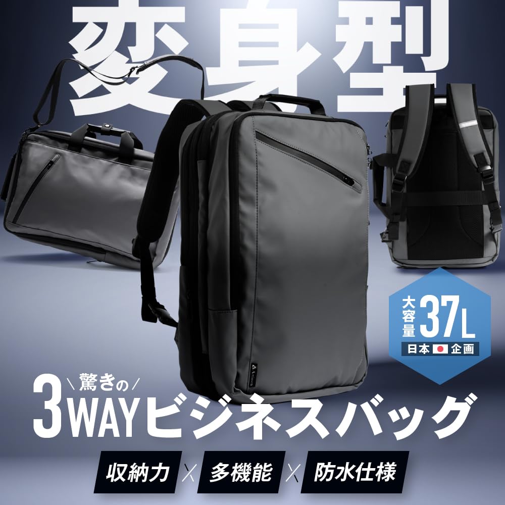 【変身型ビジネスバッグ】リュック 手提げバッグ ショルダーバッグ と使用するシーンに合わせたビジネスバッグです。老舗の生地屋だからこそ、素材からこだわり/実用性も兼ねている ビジネスバッグ ビジネスリュック ショルダーバッグ 3way バッグ です。 ・バッグの中がぐちゃぐちゃで欲しいものが探せない→仕分けポケットで整理整頓 ・バッグ1つに全てを入れたい→大容量で日常から出張まで ・ビジネスにもデイリーにも使いたい →オンとオフどちらも使えるスタイリッシュなデザイン ・大事な荷物を雨から守りたい→防水性・厚手の生地でしっかり守る ・出張・旅行の時に盗難にあわないか心配→エアタグホルダーと鍵穴付きファスナーで盗難防止