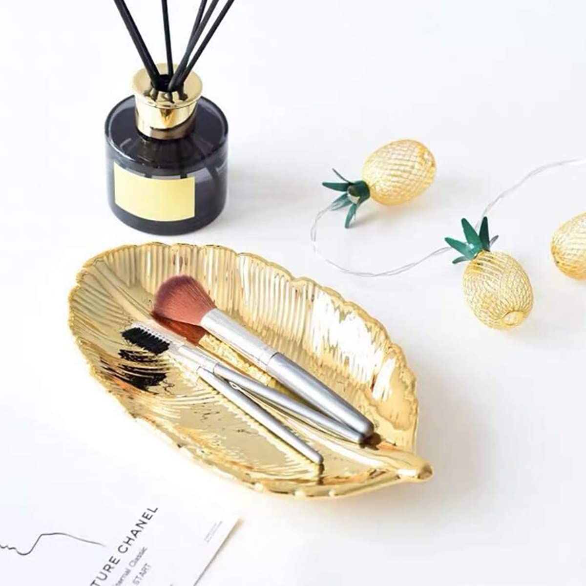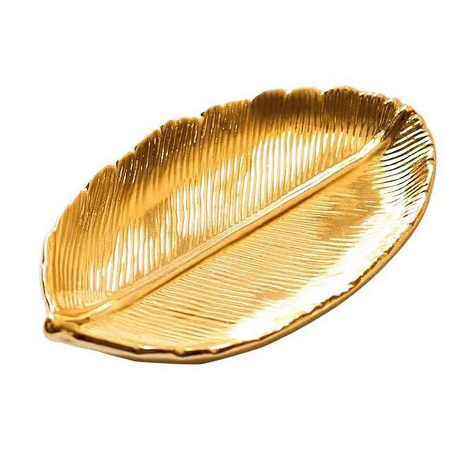 キャッシュトレイ アクセサリートレイ 小物収納トレイ 玄関トレイ セラミック製 コイントレー 釣り銭トレー 鍵置き お会計皿 玄関 小物置き 釣銭皿 ジュエリー収納 可愛い おしゃれ リーフ (ゴールド)