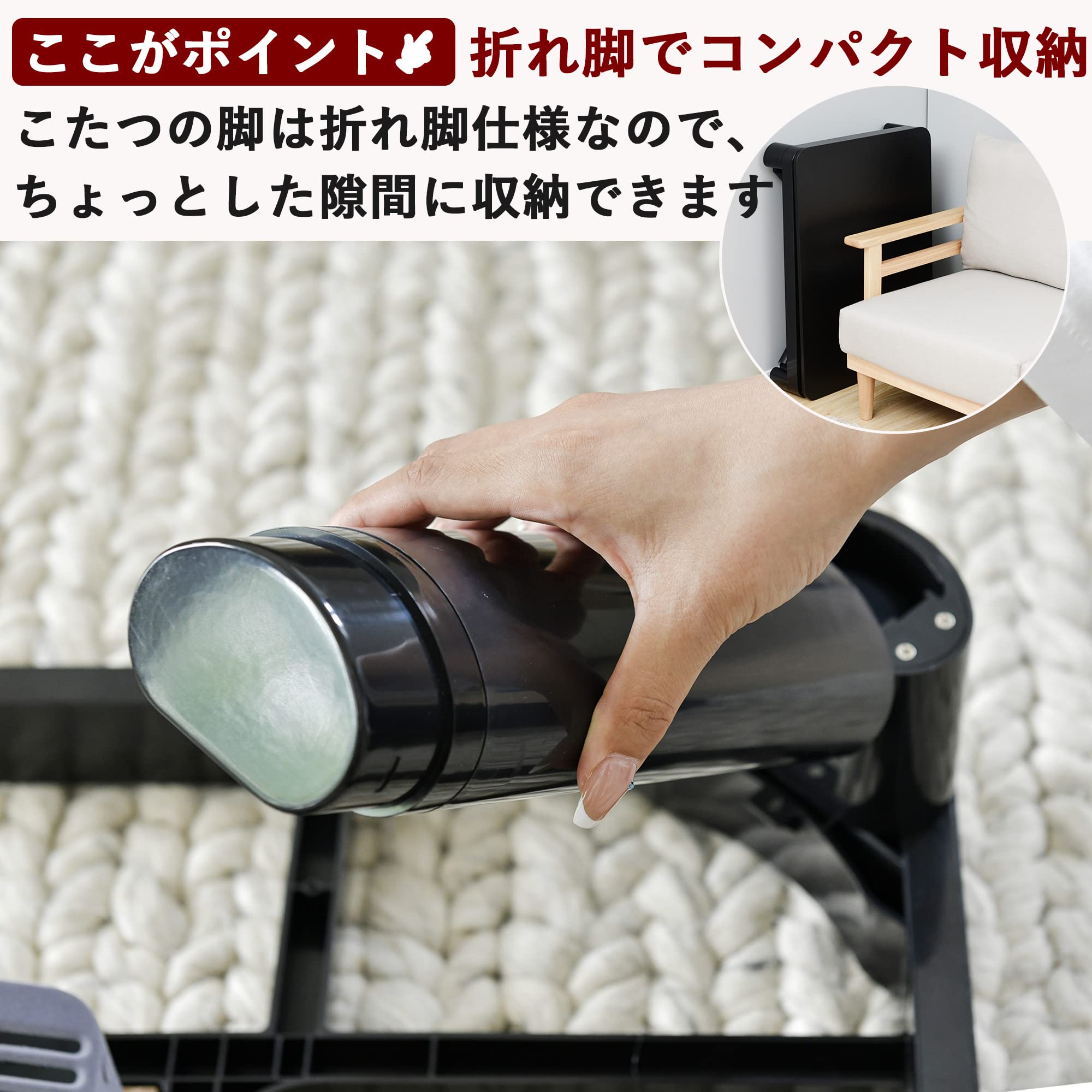 【コンパクト収納】こたつの脚は折りたたんで収納できる折れ脚仕様。収納スペースに困ることなく、家具の隙間などちょっとしたスペースでコンパクトに収納できます。