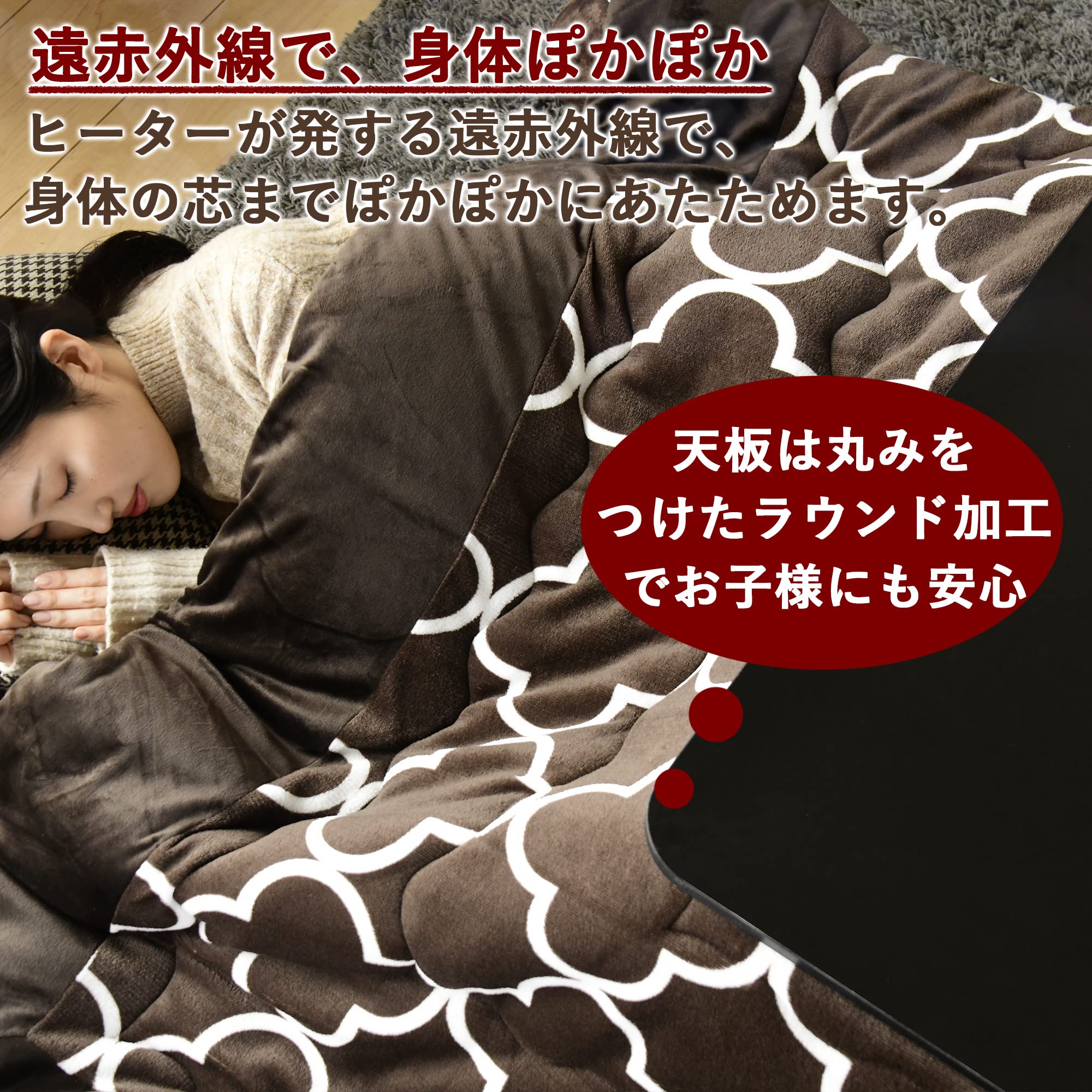 【商品仕様】▪商品サイズ:幅80x奥行60x高さ38/41cm ▪重量:8.8kg ▪ヒーターユニット型番:NCH-302 ▪発熱体:石英管ヒーター 150W×2本 ▪消費電力:300W ▪消費電力量(1時間あたり):強=約130Wh、弱=約60Wh ▪電気代目安(1時間あたり):強=約4.03円、弱=約1.86円(1kWhあたり31円として計算) ▪コード:電源スイッチ付き(2PL)丸打ちコードタイプ 3m ▪期間(ヒーター部):お買い上げ日より1年間(の範囲については、書をご確認ください。(一般家庭用以外(業務用など)に使用された場合の故障及び損傷などは対象外となります))
